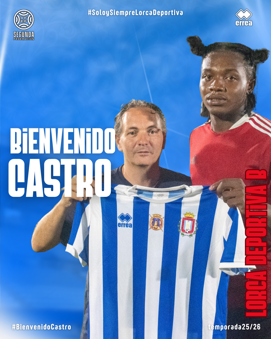 Con Castro ya son once los confirmados de la plantilla del filial lorquinista para la próxima temporada, se une a Jaime Llinares, Gázquez, Isaac García, Javi García, Cartu, Mario Jesús, Pedro Luna, Juanpe, Sebas Meca y Tomlinson y ya está a las órdenes de Juan Carlos Cuadrado y Roque Victoria con los que debutó ayer en el partido amistoso que enfrentó al filial blanquiazul con el filial del UCAM Murcia con resultado de 1-1.