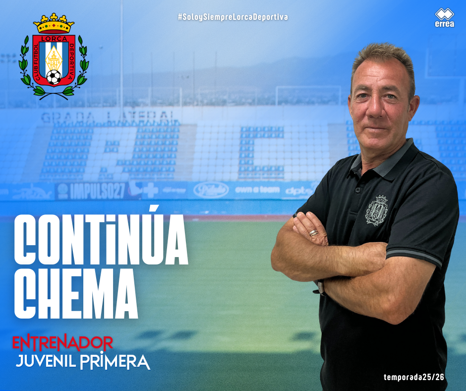 Chema Martínez, continuará una temporada más como entrenador del Juvenil de Primera del Lorca Deportiva. La temporada pasada el equipo mantuvo la categoría y afronta el nuevo año sin renunciar a ningún objetivo.
