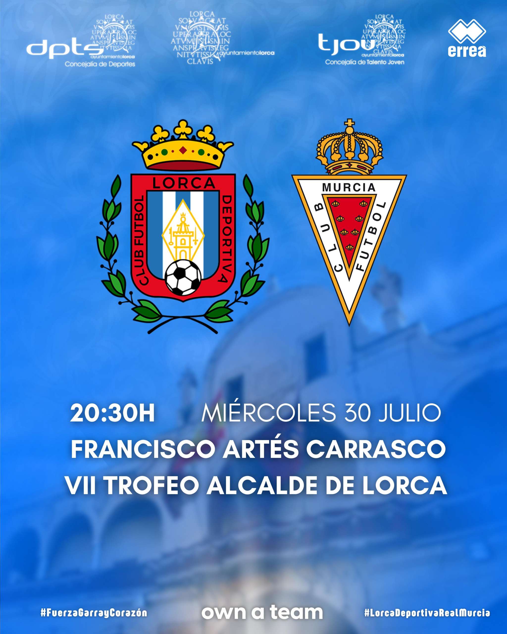 El próximo miércoles 30 de julio, a las 20:30, tendrá lugar en el Artés Carrasco el partido del Trofeo «Alcalde de Lorca» en su septima edición. En esta ocasión vendrá a Lorca, el Real Murcia, de Primera Federación, en el que supondrá el estreno en casa del nuevo Lorca Deportiva de Sebas López en su regreso a Segunda Federación.