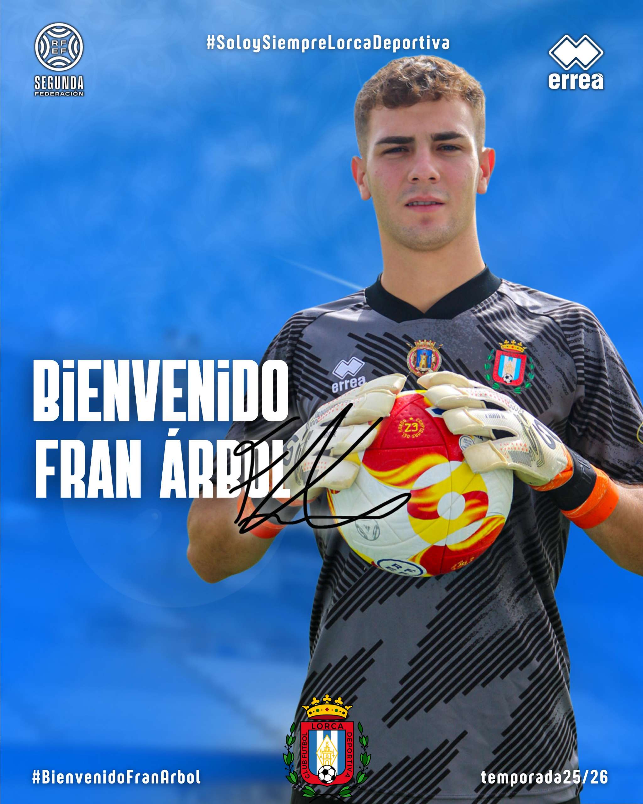 Fran Árbol es el decimoquinto fichaje del Lorca Deportiva 2025/2026 tras las incorporaciones del delantero lorquino Tomás Inglés, el centrocampista murciano, Álvaro Martínez, el lateral izquierdo Morros, el portero Ernestas, el extremo izquierdo Juanma, el delantero centro Naranjo, el centrocampista Spinman, el lateral derecho Jaime Escobar, el extremo izquierdo lorquino, Juan Hernández, el centrocampista Willy, los centrales Saturday y Fran Tafalla y el lateral Soler.
