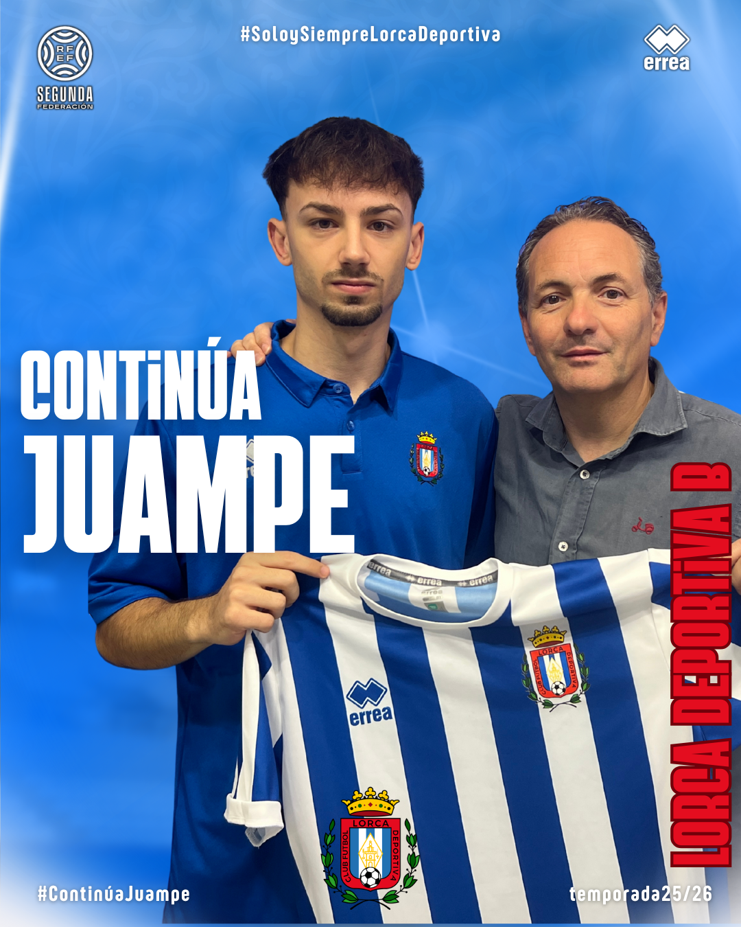 Juanpe se une a Sebas Meca y Tomlinson como primeros confirmados de la plantilla del filial lorquinista para la próxima temporada y comenzará la semana que viene con los entrenamientos a los órdenes de Juan Carlos Cuadrado y Roque Victoria.