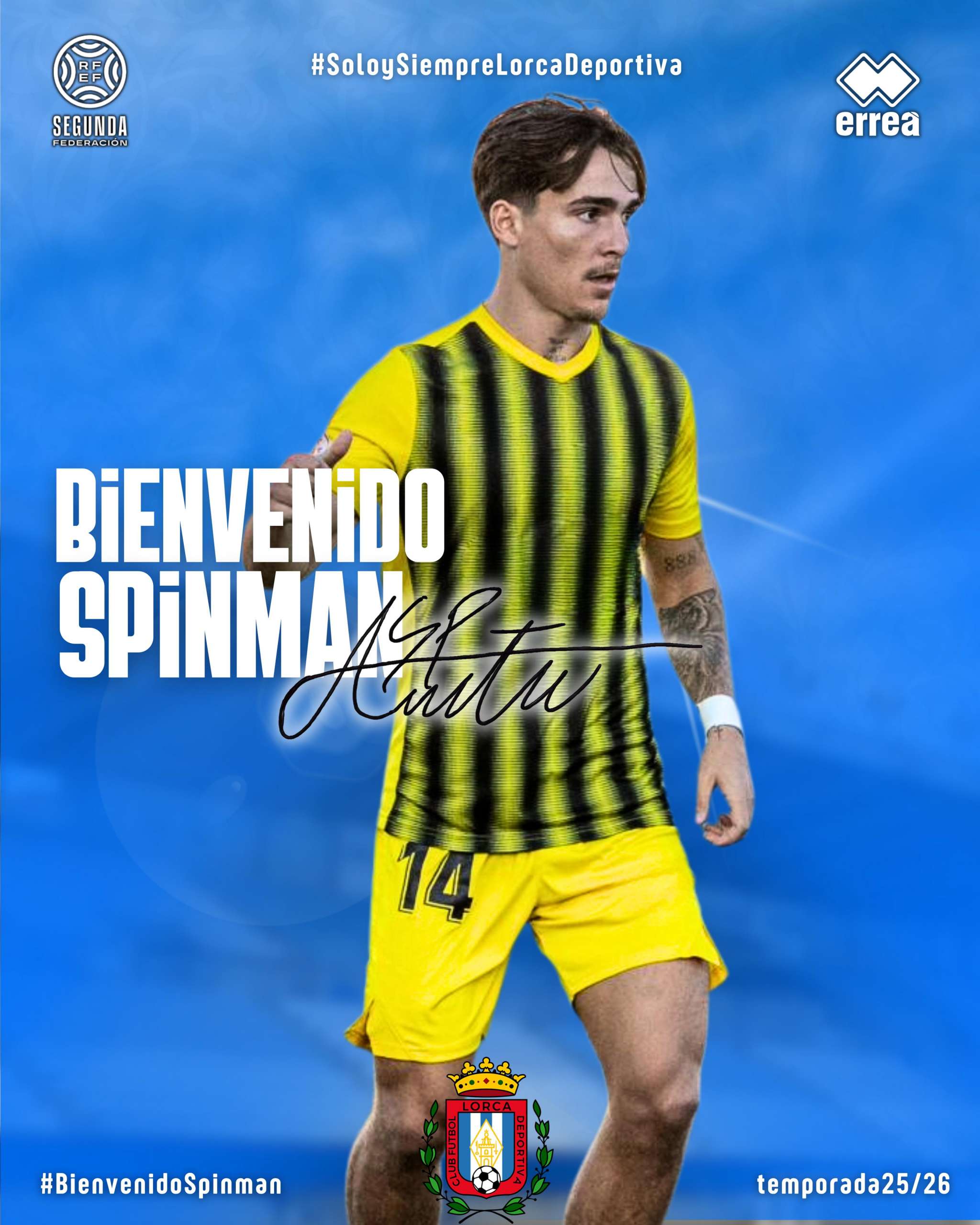 Spinman es la decimoquinta confirmación del Lorca Deportiva 25/26 tras los anuncios de continuidad de Carrasco, Peque, Sergi Monteverde, Galiano, Gabri López, Bertomeu, Dani Albiar y Kiko y los fichajes del delantero lorquino Tomás Inglés, el centrocampista murciano, Álvaro Martínez, el lateral izquierdo Morros, el portero Ernestas, el extremo izquierdo Juanma y el delantero centro Naranjo.